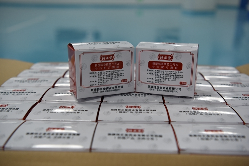 勁牌持正堂藥業在全國主要藥材產區建立了藥材種植或直供基地,建立了提取、分離、濃縮、干燥、制粒的完備技術及生產體系,年中藥材處理能力5300噸,有力地保障了此次預防二號方中藥配方顆粒的快速生產。