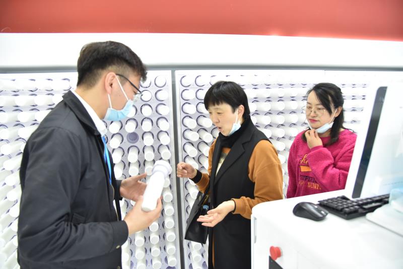 在現場,兩臺智能調配機、等人高的單味中藥配方顆粒藥柜,吸引了不少人的目光。利用智能調配系統,替代手工抓藥、精確稱量、合理調配、規范封裝,處方更便捷、劑量更準確、操作更衛生、調劑更安全、取藥更快速。參觀者皆感慨,原來中藥也可以這么喝,這么方便。